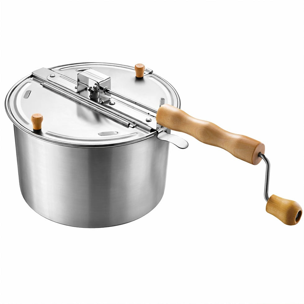 Bring movie-night magic home with this classic crank stovetop popcorn popper, designed for perfectly popped, fresh popcorn every time. The smooth-turning hand crank continuously stirs kernels as they heat, ensuring even popping and helping prevent burning or unpopped kernels.